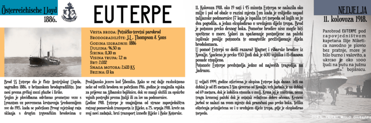 Brod SS Euterpe dio je flote Austrijskog Lloyda, sagrađen 1886. u britanskom brodogradilištu. (Ime nosi prema grčkoj muzi glazbe i lirike).